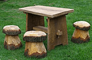 - Stool seats and wooden garden ornaments
